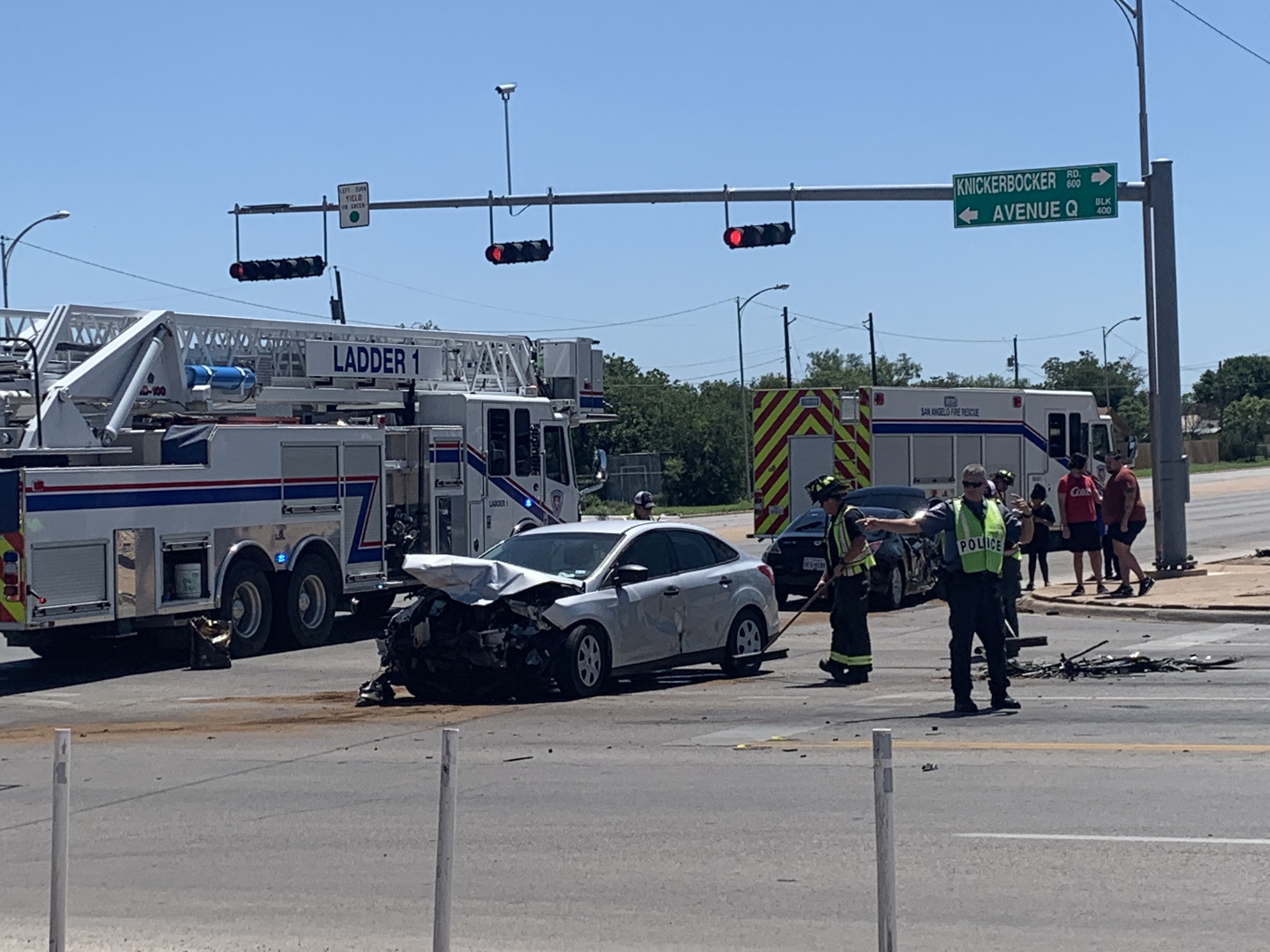 SAN ANGELO,TX – A two vehicle collision at the intersection of S. Bryant and Knickerbocker Rd. left one driver jammed inside a smashed vehicle.