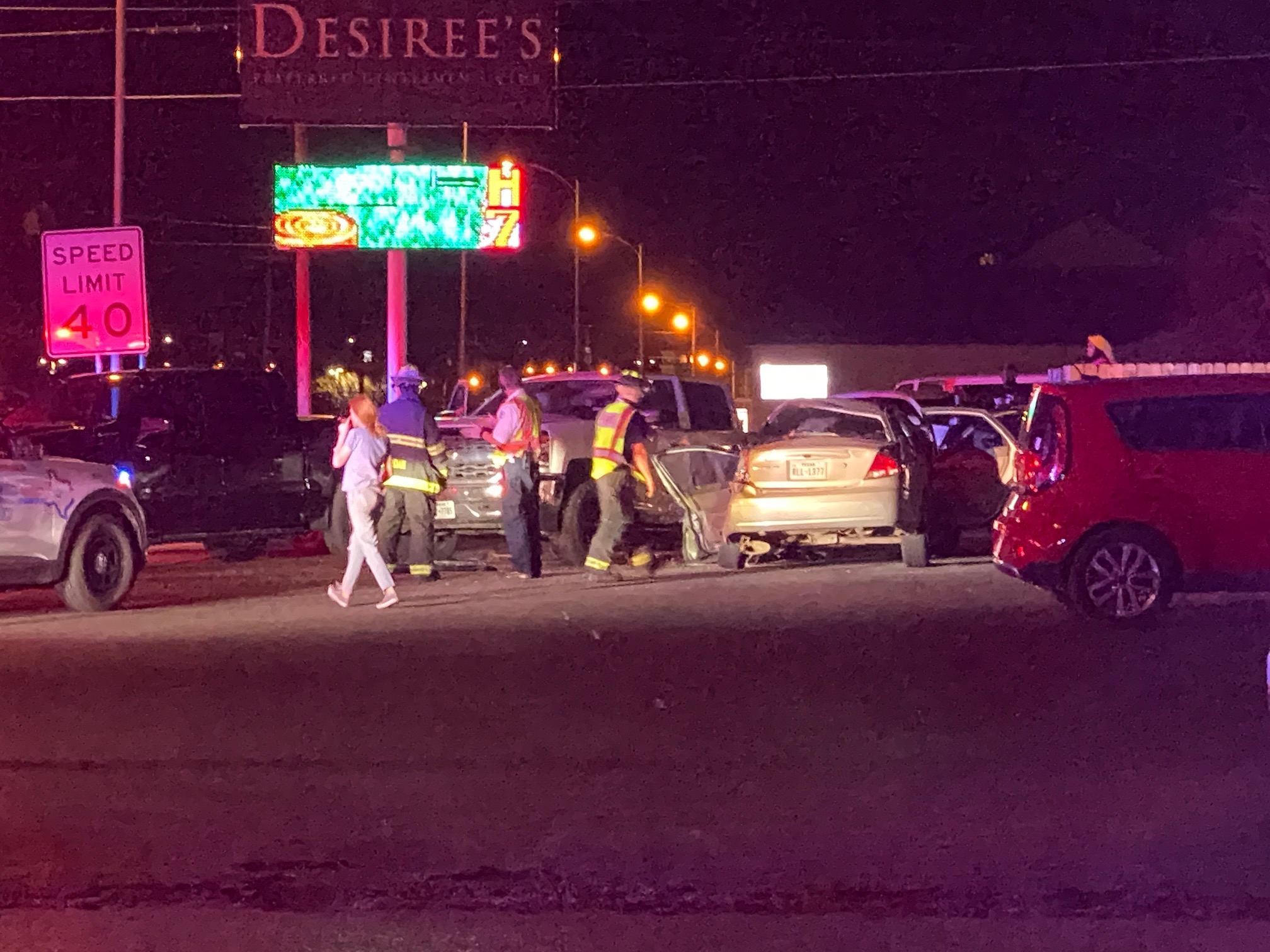 SAN ANGELO – The driver of a passenger car crashed into two pickups parked in Desiree's Strip Club parking lot on the corner of Bryant Blvd. and Washington St. Friday night.