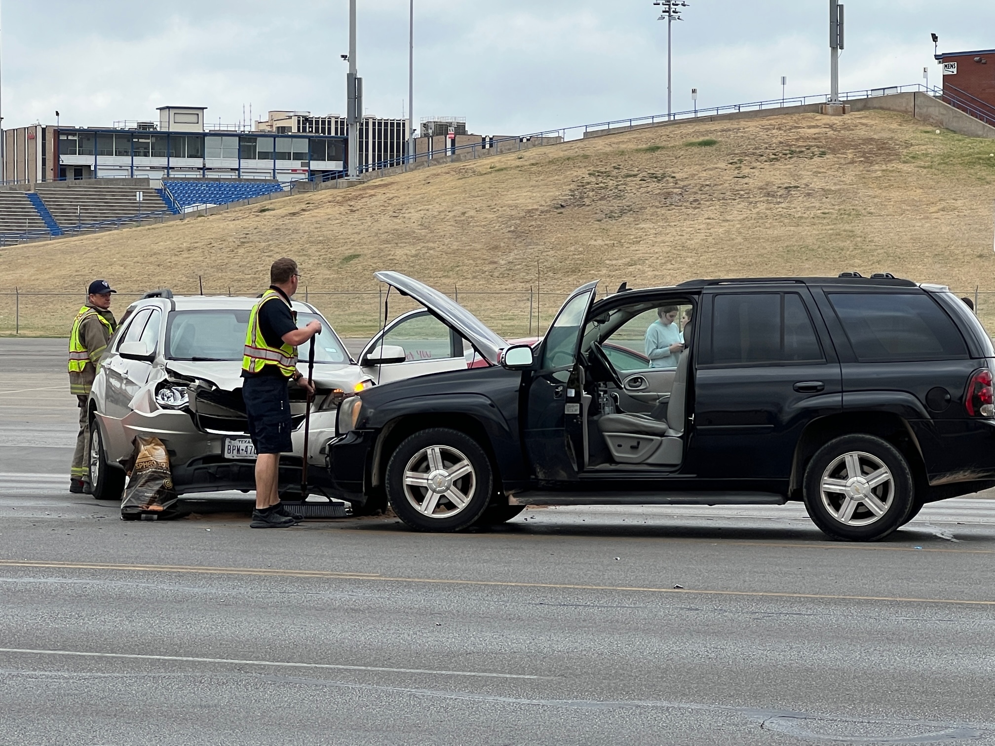 SAN ANGELO – Traffic on Knickerbocker Rd. was halted Friday morning after a crash in front of Bobcat Stadium.