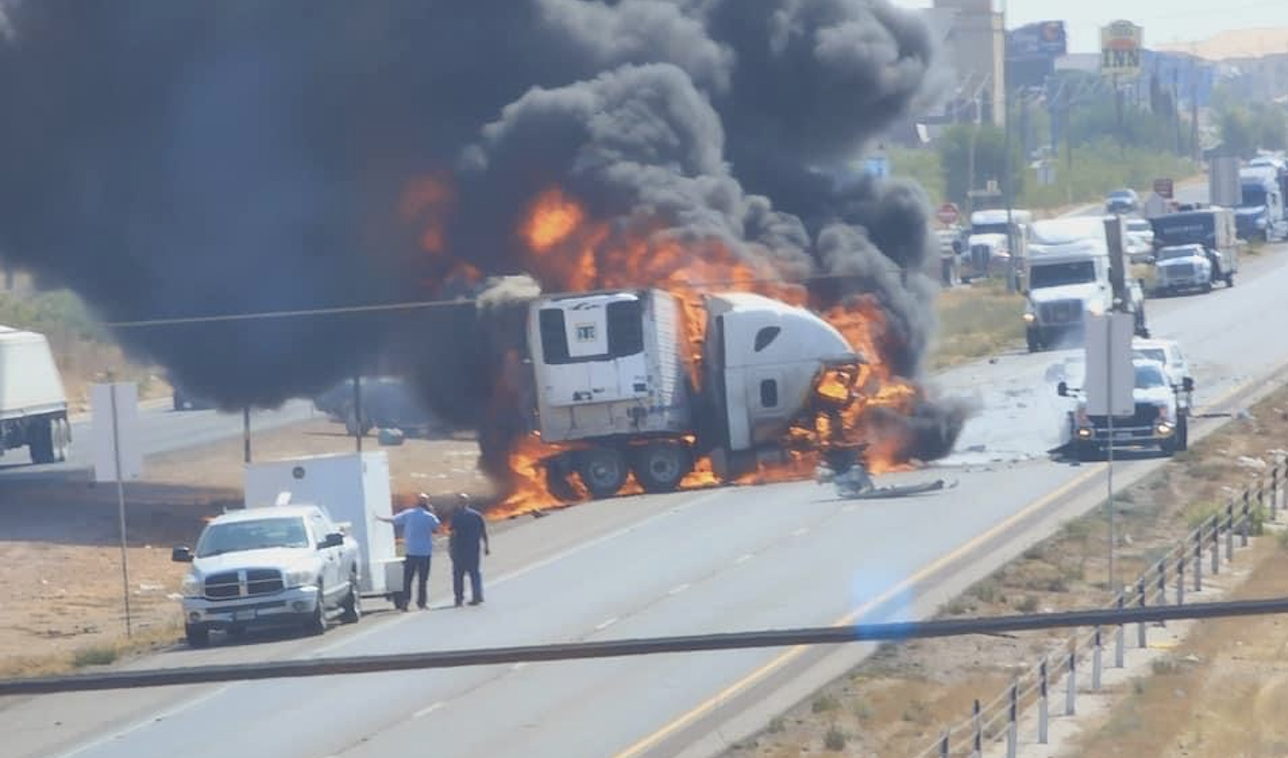 MIDLAND, TX – A fiery crash involving an 18-wheeler shut down a portion of I-20 on Thursday morning in Midland.