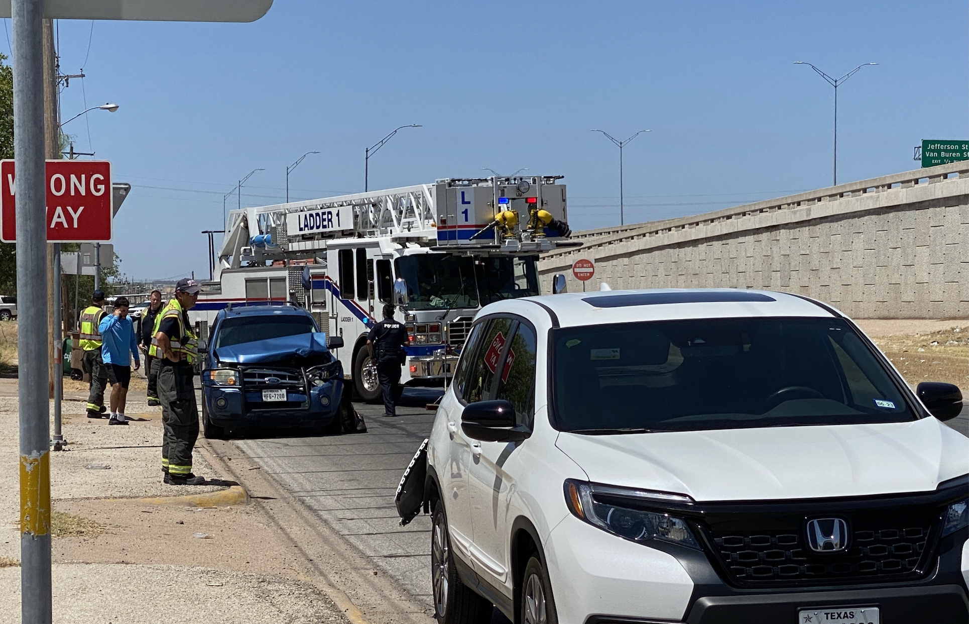 Officer Welch with the San Angelo Police Department told reporters at the scene that the blue Ford Escape was traveling eastbound on 6th St., failed to control speed, and rear-ended a white Honda Passport.