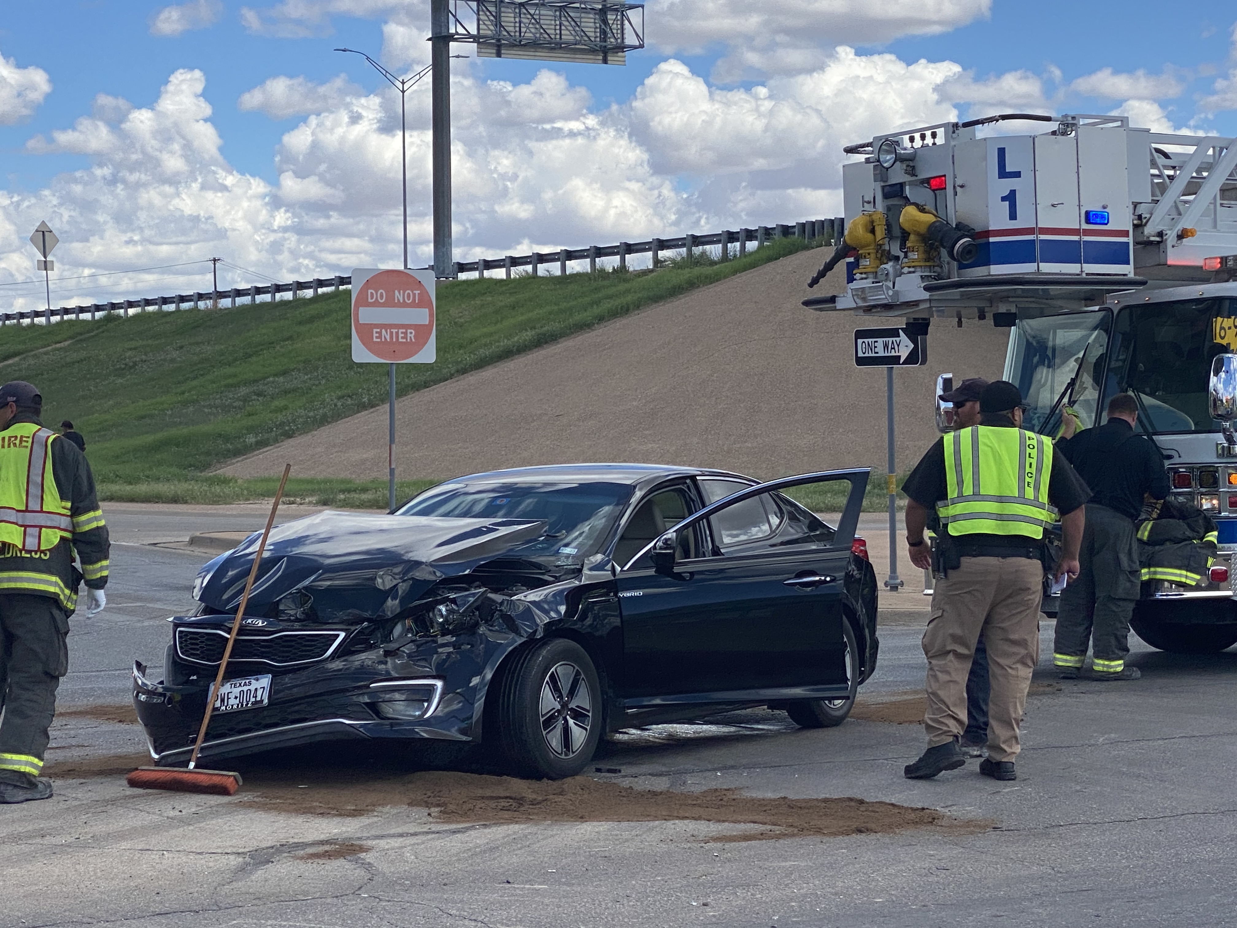 When the officers, along with Fire and EMS, arrived at the scene they discovered a black Kia and a White Chevy pickup that had crashed in the middle of the intersection.