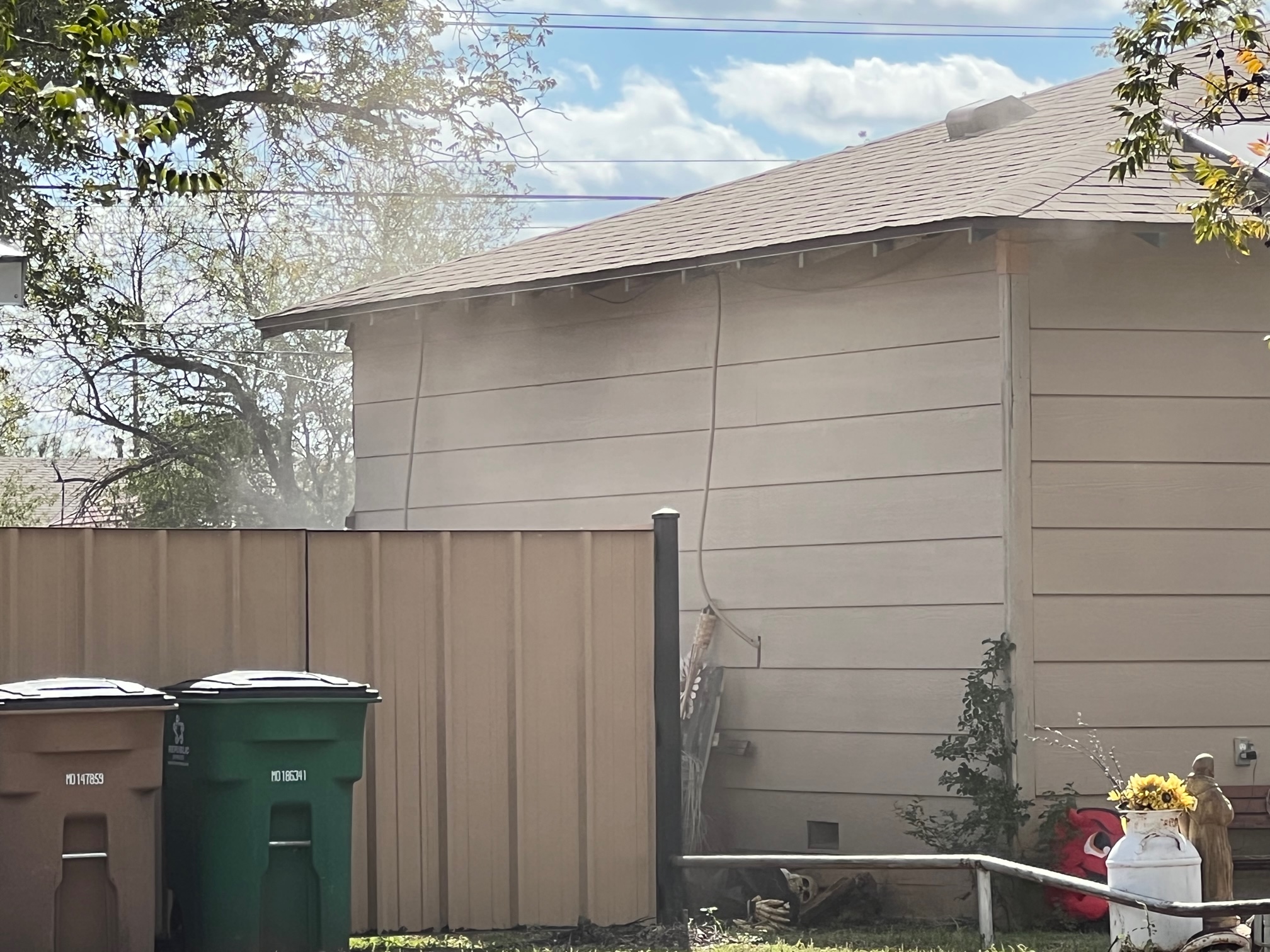 Reporters on the scene say there was smoke coming from under the eves of the house.
