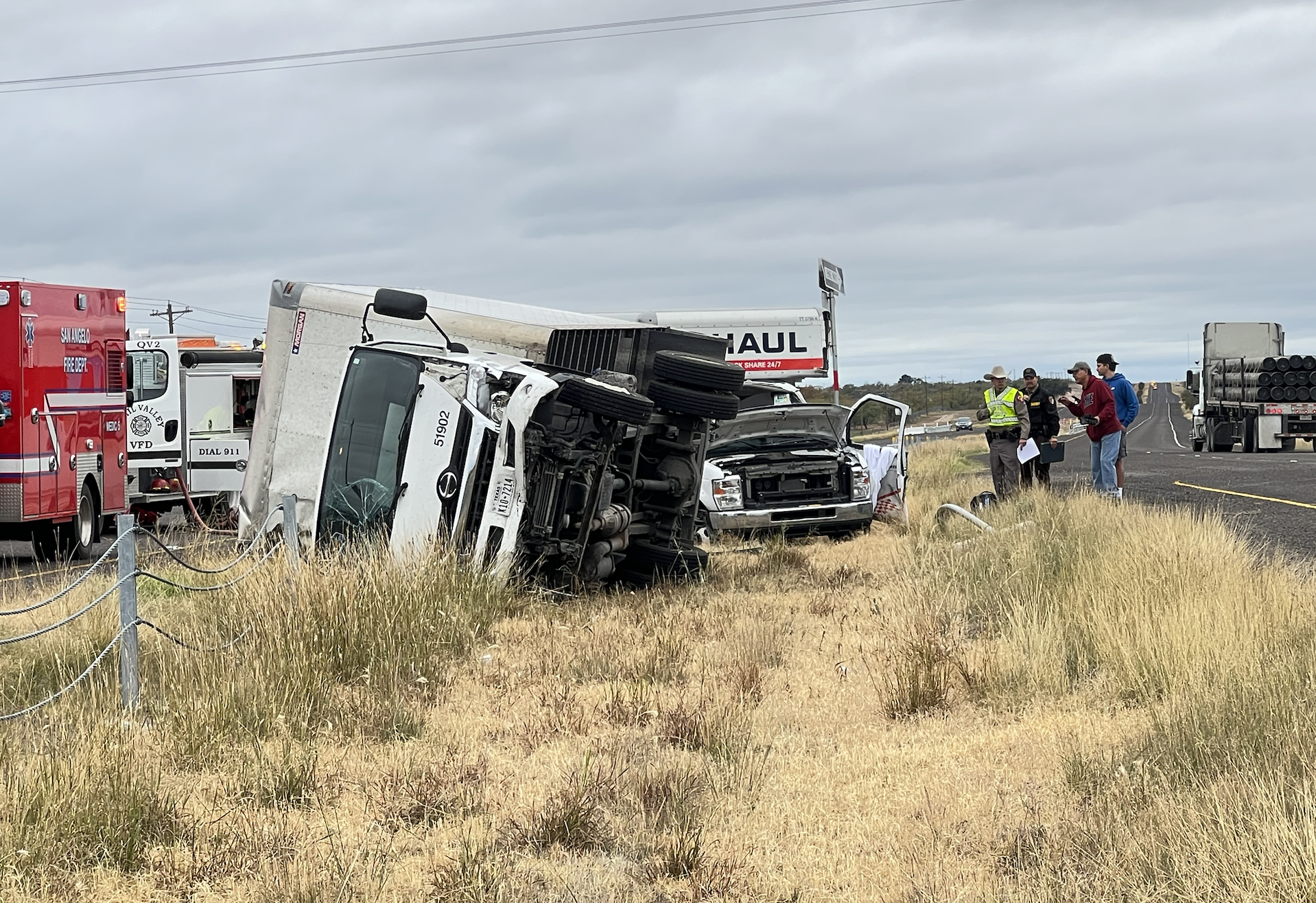 The Department of Public Safety worked the crash and the Tom Green County Sheriff’s Office assisted with traffic. Reporters on scene witnessed an individual involved in the crash be transported by ambulance to Shannon Medical Center. Also, the U-Haul truck and Nissan box truck are believed to be the only vehicles involved at this time.