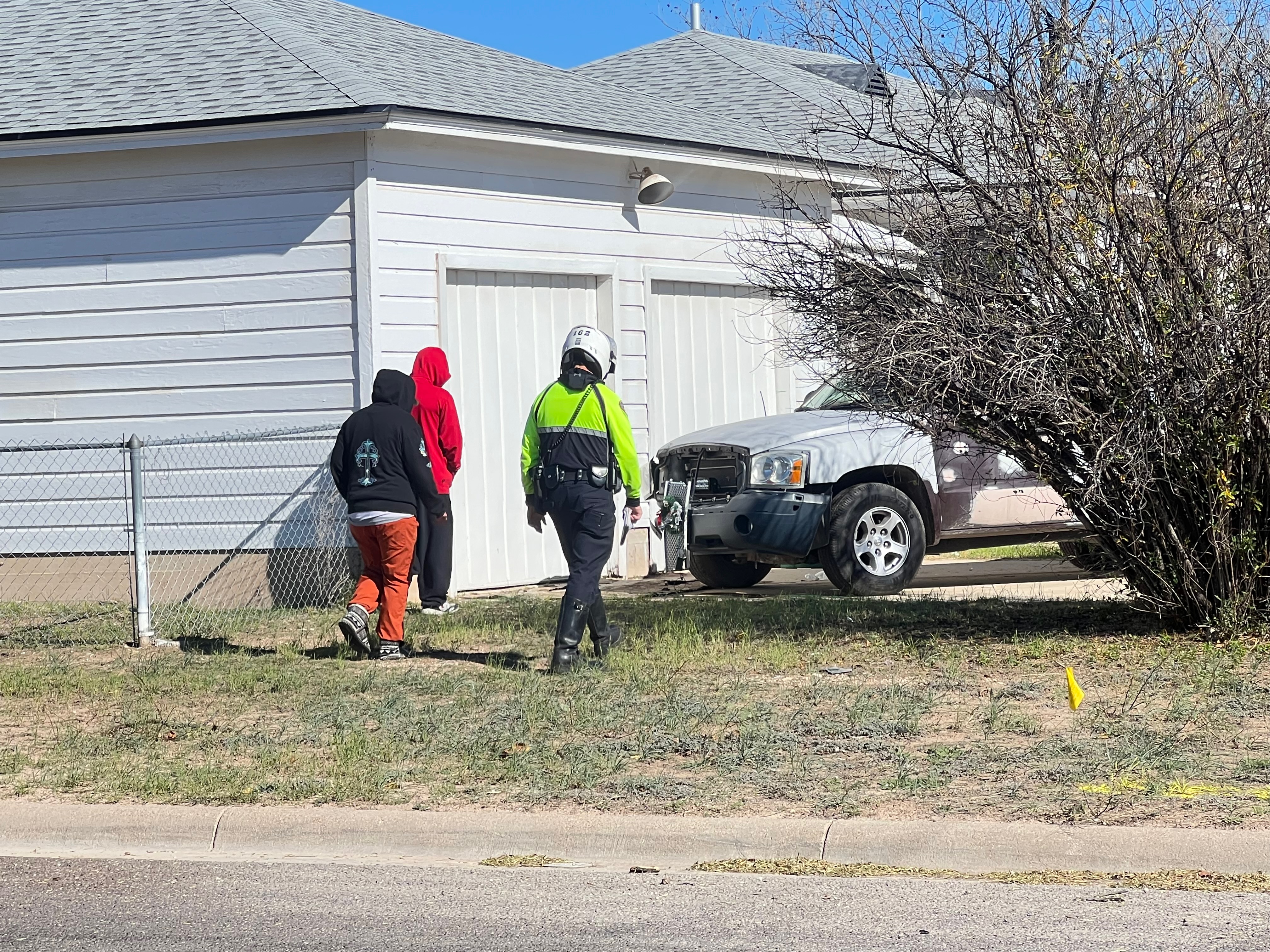 Well after reporters and police arrived at the scene, two people arrived with a police traffic investigator, got into the Dodge Dakota truck, and drove it away. Espinoza said the person driving the truck away from the scene was not the same person accused of crashing it. The truck could actually drive on its own power after this crash.