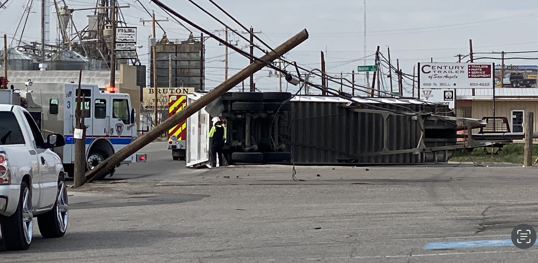 SAN ANGELO – A bizarre crash on Bell St. Tuesday afternoon took out a signal light and power lines when a bobtail truck with the bed raised hit them and the driver apparently fled the scene.