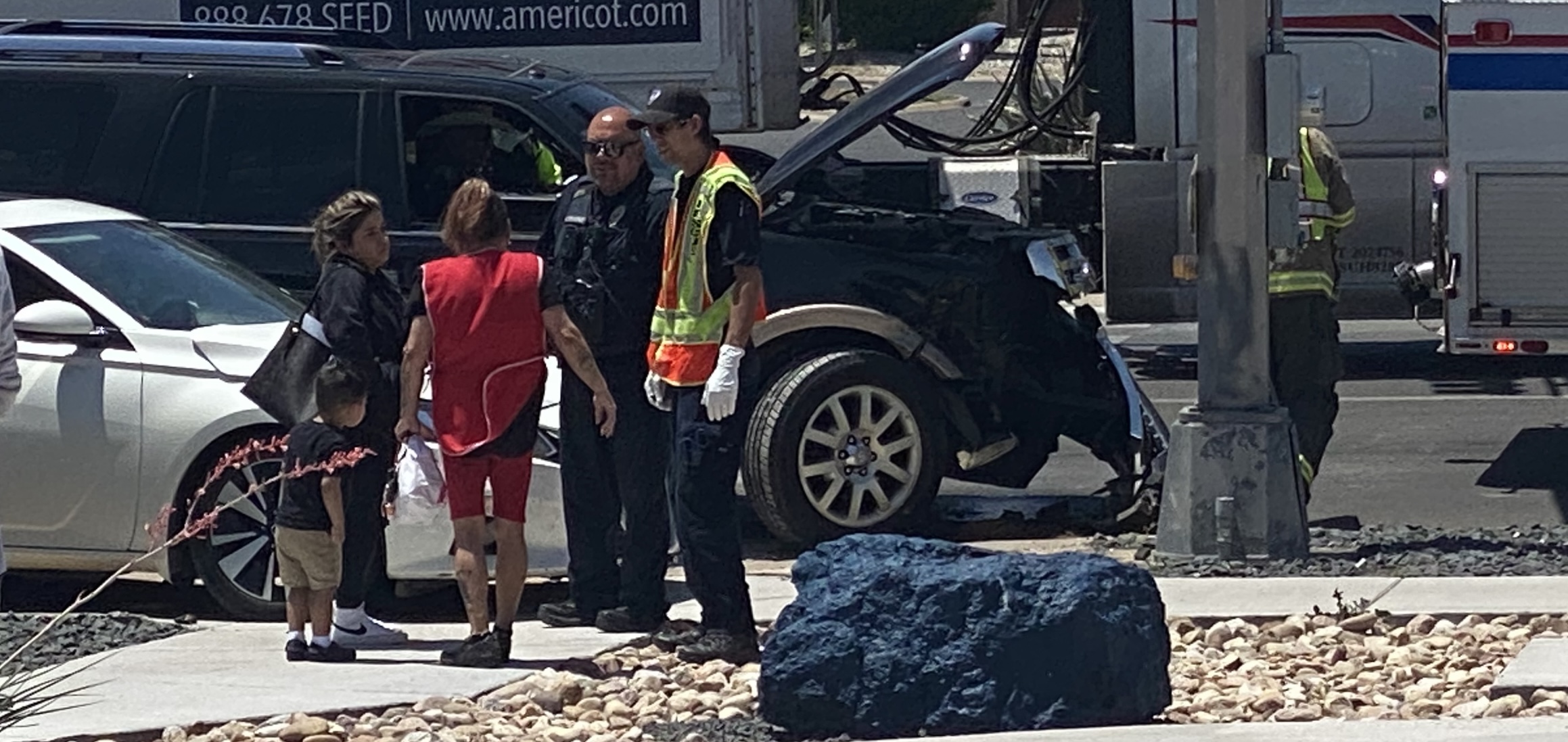 Office Long says the SUV turned left into the white Nissan causing the crash.