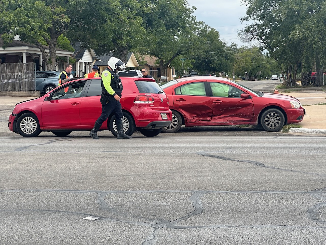 SAN ANGELO, TX — Two red cars collided in a crash on W. Beauregard at the S. Jackson intersection.