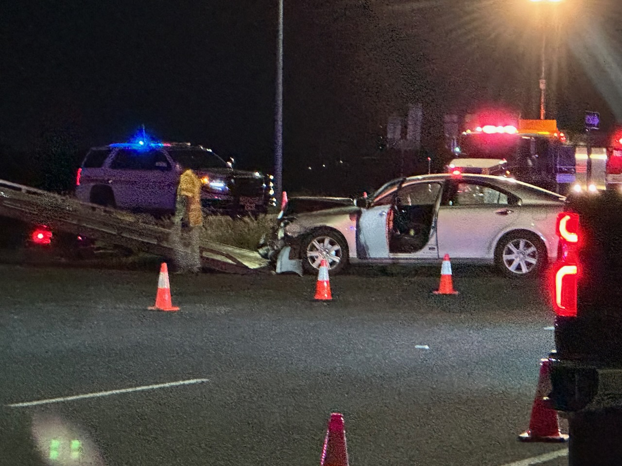 The collision transpired on Saturday, Sept. 30, at approximately 8:30 p.m. Conditions were dark with clear skies, and the road surfaces were dry at the time of the incident. While no ambulances were observed at the scene, it remains uncertain whether there were any injuries sustained.