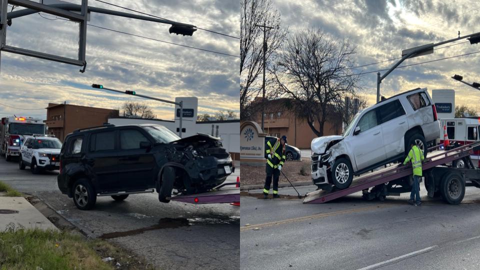 SAN ANGELO, TX — In an afternoon crash at the 600 block of South Chadbourne and East Avenue L, local law enforcement and emergency services responded to a crash between a white Chevy Tahoe and a black Honda Pilot.