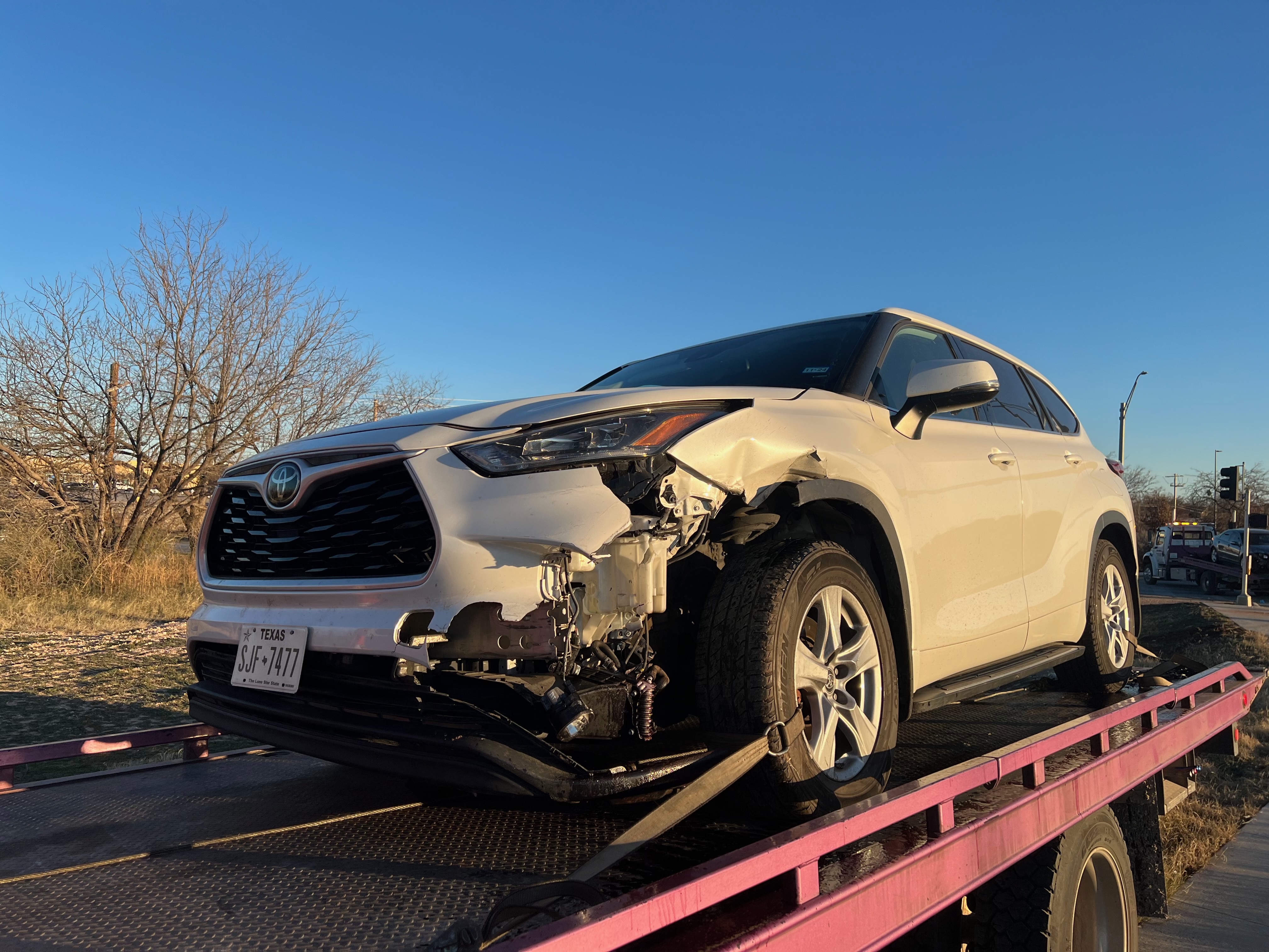 The white Toyota was pushed off road and made tire marks in Walmart’s front lawn. The crash site was cleared by 5:30 p.m.