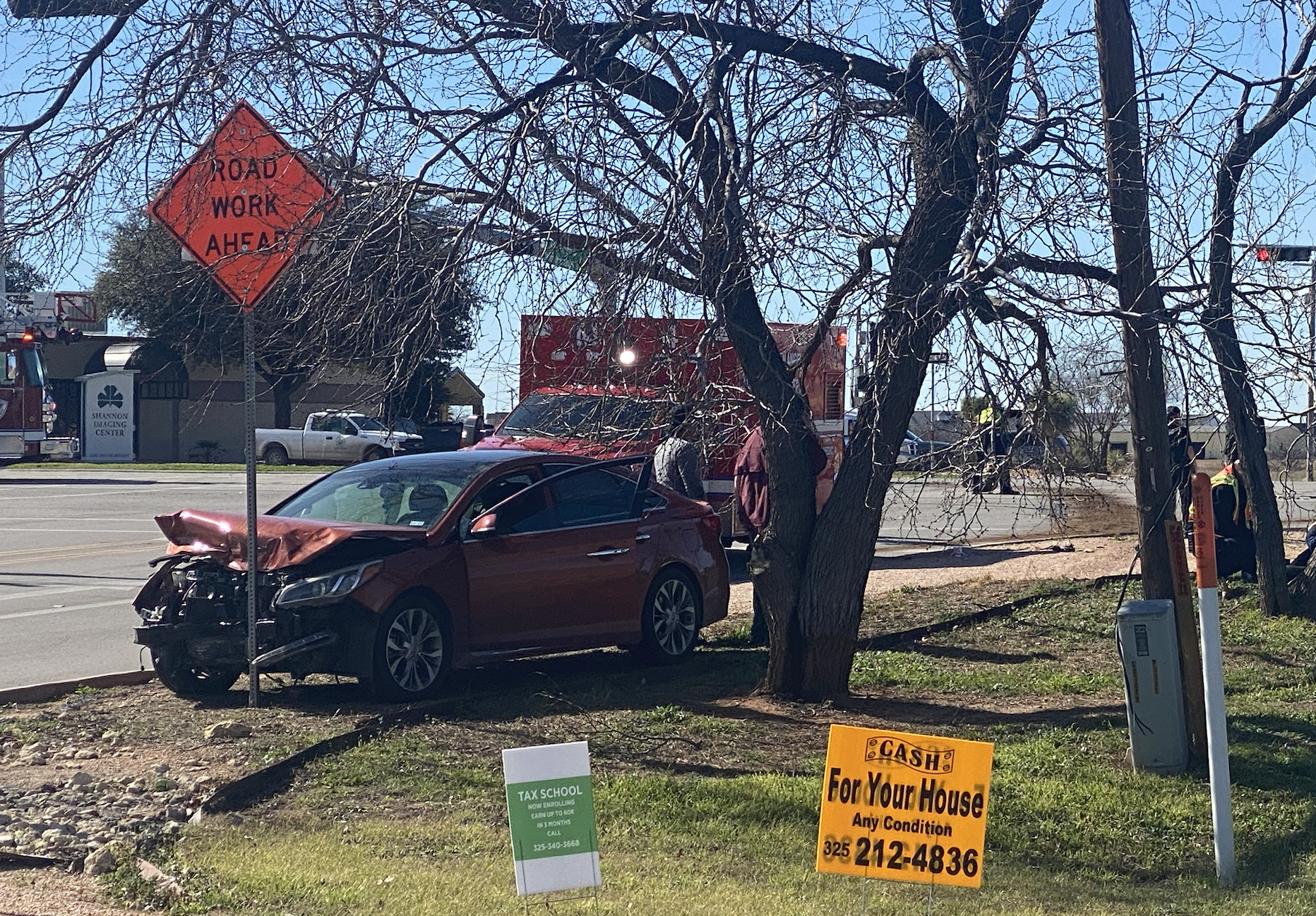 Around 1:45 p.m., two vehicles crashed in front of Walmart on South Jackson Street at the intersection of Town and Country Road, Ben Ficklin Road, and South Bryant. San Angelo Police Department’s Public Information Officer Richard Espinoza that when officers arrived on scene, they learned that an orange passenger vehicle was northbound on South Bryant and a black Altima was trying to turn left into the Walmart parking lot across South Bryant.