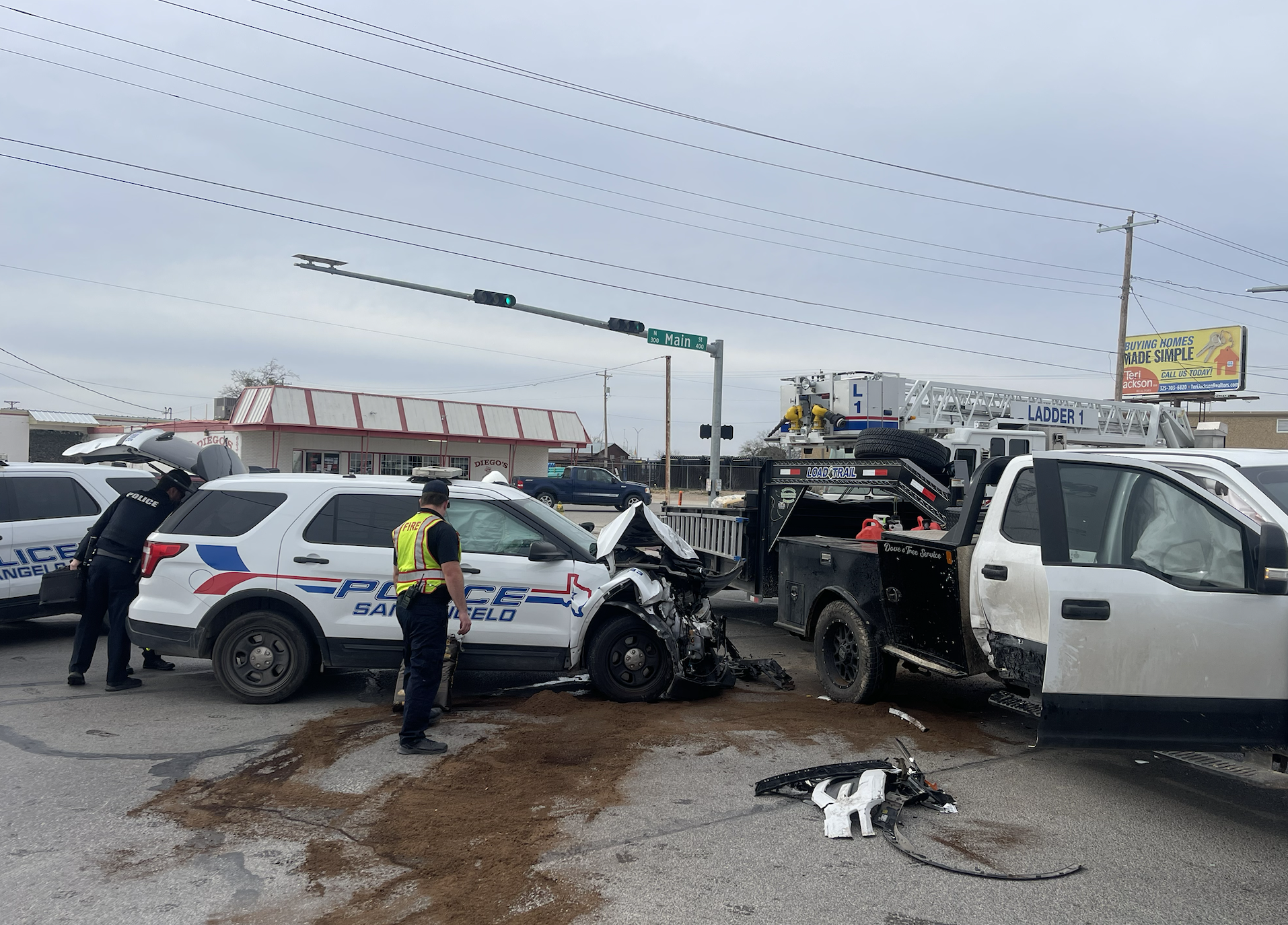 SAN ANGELO, TX - A crash between a San Angelo Police cruiser and a Ford F350 occurred at the Main St. and Pulliam intersection, resulting in a citation for the pickup driver.