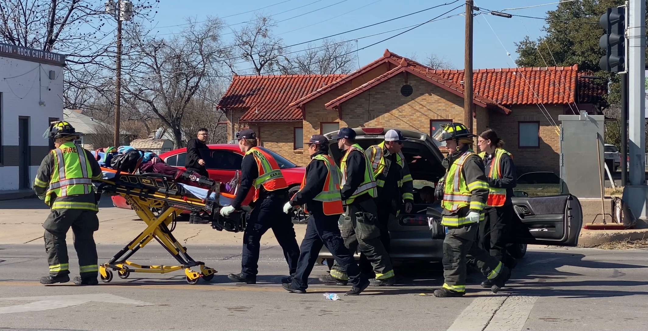 The driver of the Camaro was extracted from the Camaro and and loaded onto a stretcher before being rushed to Shannon ER. From what we can tell, this was the only major injury.