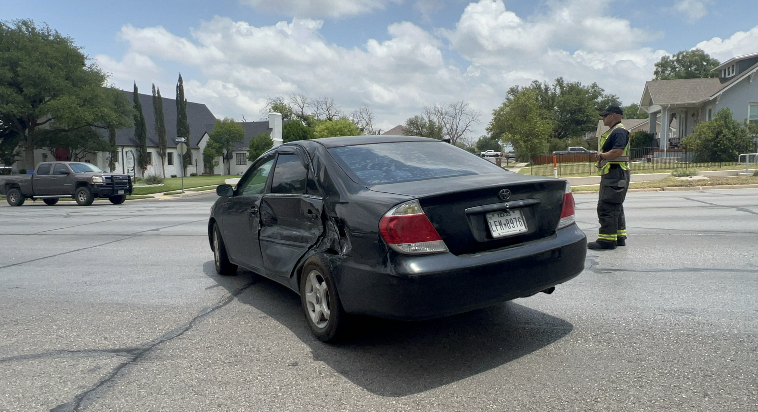 A San Angelo police officer said at the scene that a two-vehicle crash occurred at the intersection of South Abe Street and West Avenue D. A Chevy Avalanche was traveling westbound on Avenue D, while a Toyota Camry was traveling southbound on South Abe.