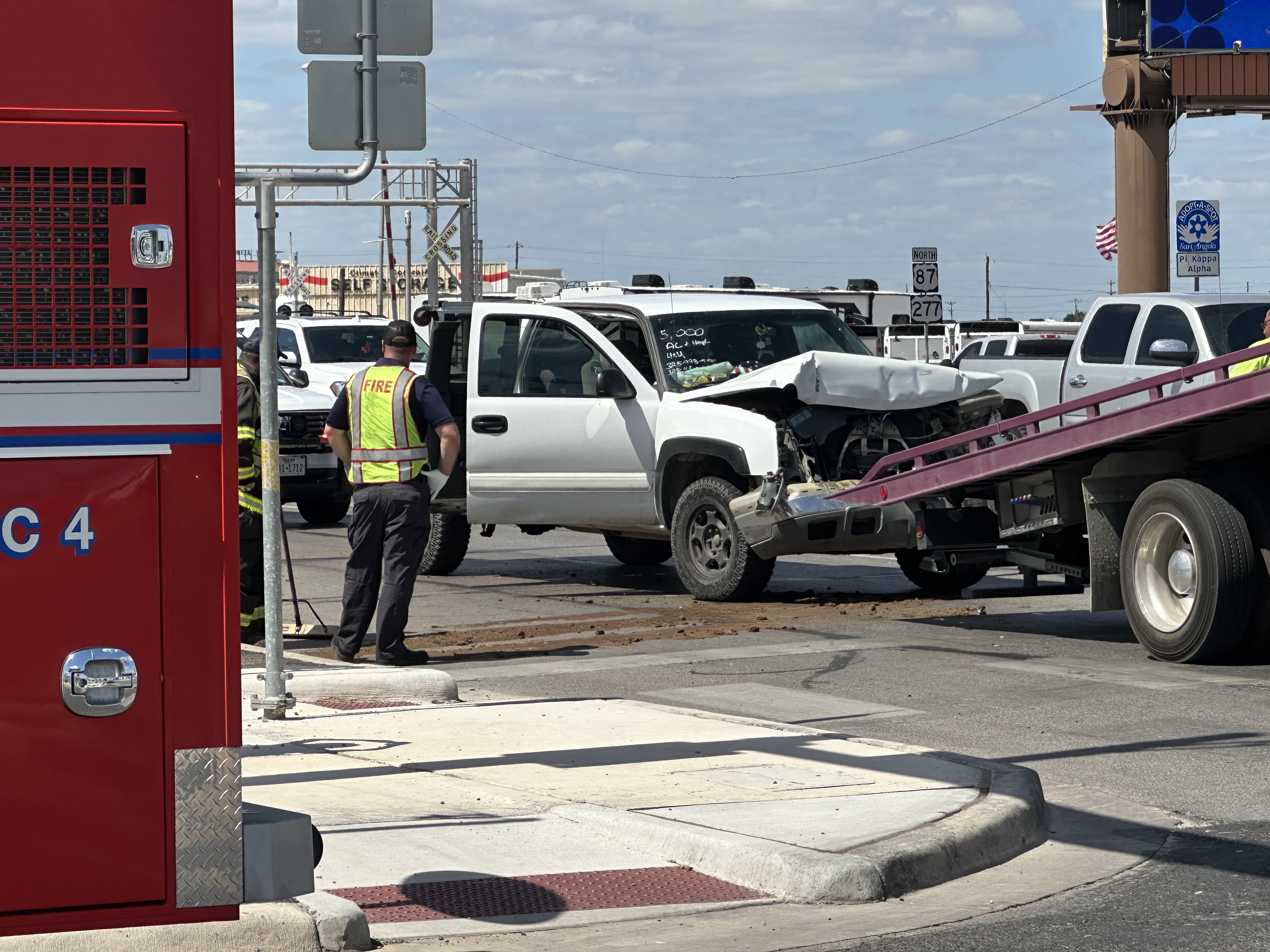 SAN ANGELO, TX — A crash this afternoon at the intersection of South Bryant Boulevard and West Avenue L sent at least one person to the hospital. One white Chevy Silverado had serious front-end damage, but no other vehicle was present.