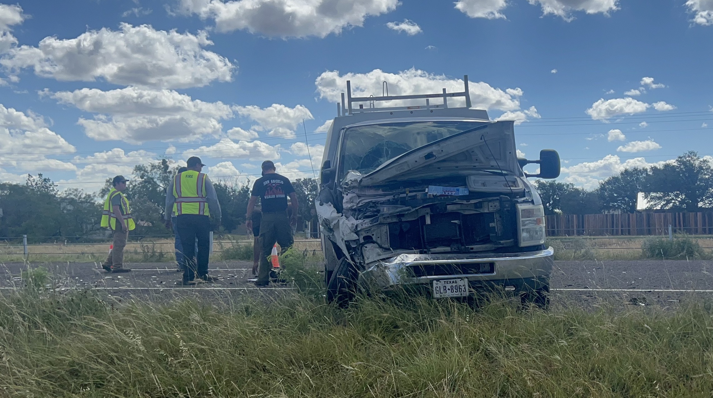 SAN ANGELO, TX — A crash on South Loop 306 turned into a vehicle fire after a work van hit a truck hauling a livestock trailer on Monday morning.