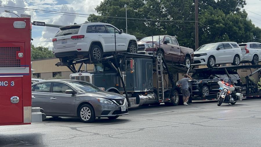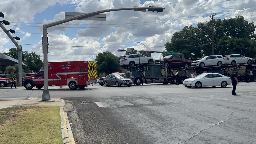 SAN ANGELO, TX - A crash between a car hauler and a Nissan Sentra resulted in one person being sent to the hospital and traffic disruptions.