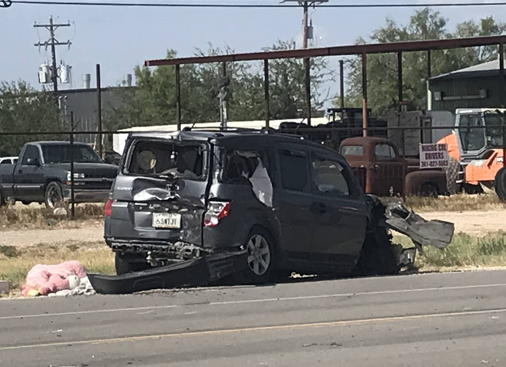 The Honda Element had extensive front end damage, rear damage, and the driver was trapped for a time. Debris was scattered across the road and traffic had to be diverted while the Grape Creek Volunteer Fire Department cleaned the roadway and the Department of Public Safety worked the crash.