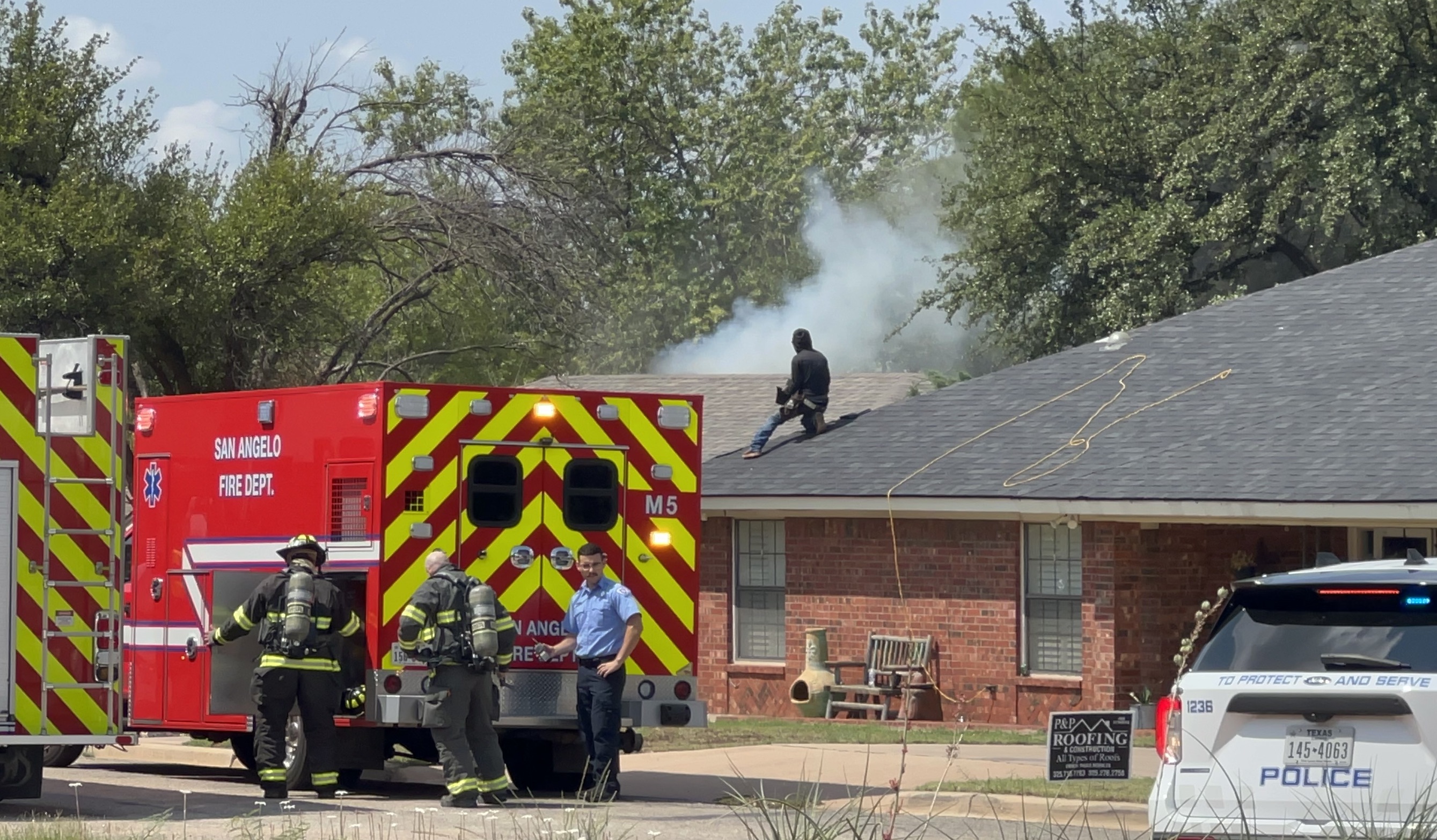 Radio communications indicated that smoke could be seen rising from the roof of the residence. Our reporter on the scene confirmed that smoke was present. Video footage shows the smoke pouring from the top of the house.