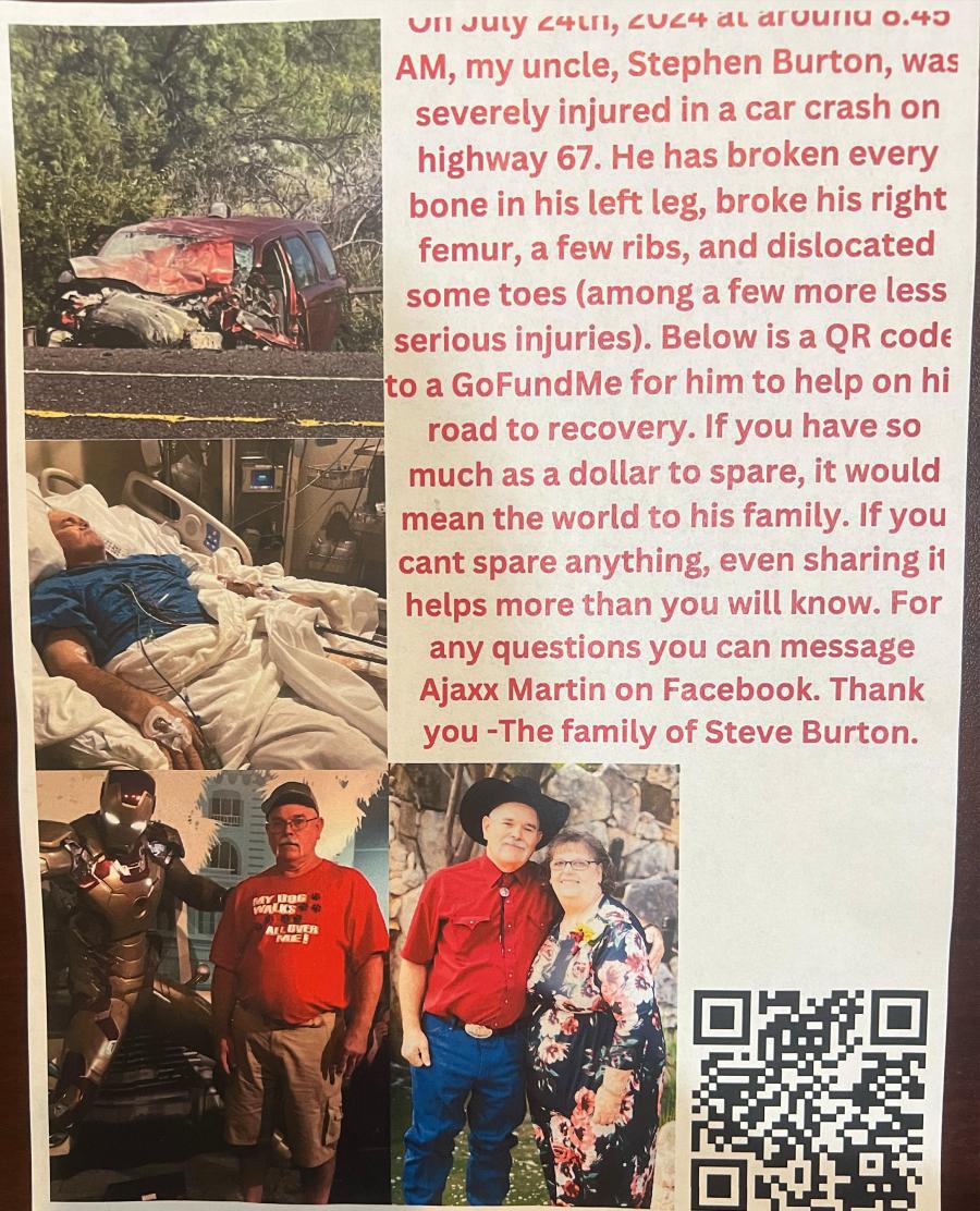 Burton's family has thanked everyone in advance for their continued prayers and support. They also appreciate the ongoing assistance from their church, Immanuel Baptist, and their friends during this challenging time.