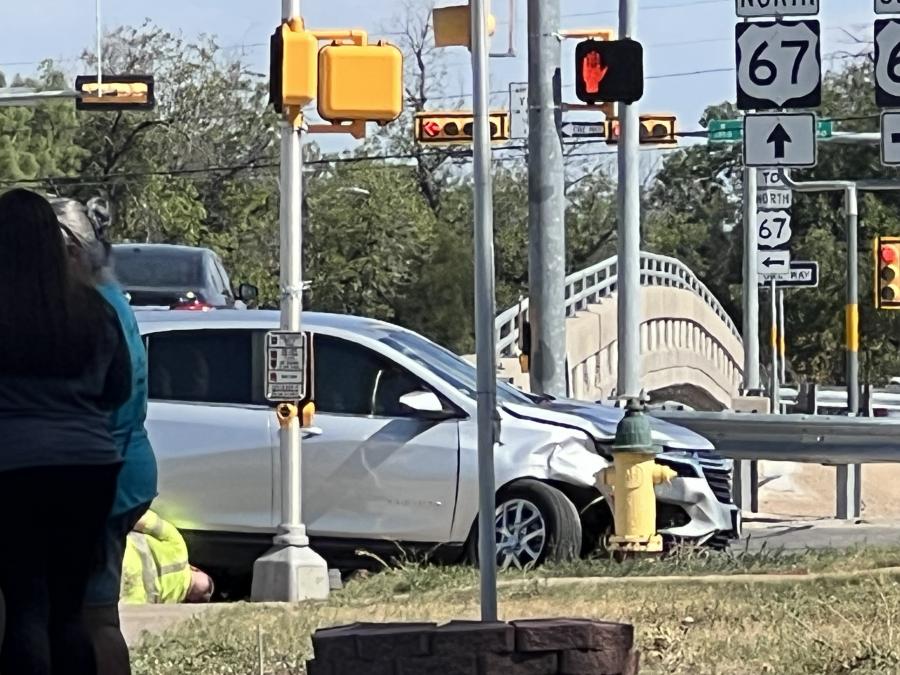 SAN ANGELO, TX — A two-car crash occurred at the intersection of North Jefferson Street and Shiloh Street today around 4 p.m., resulting in at least one person being transported to the hospital.