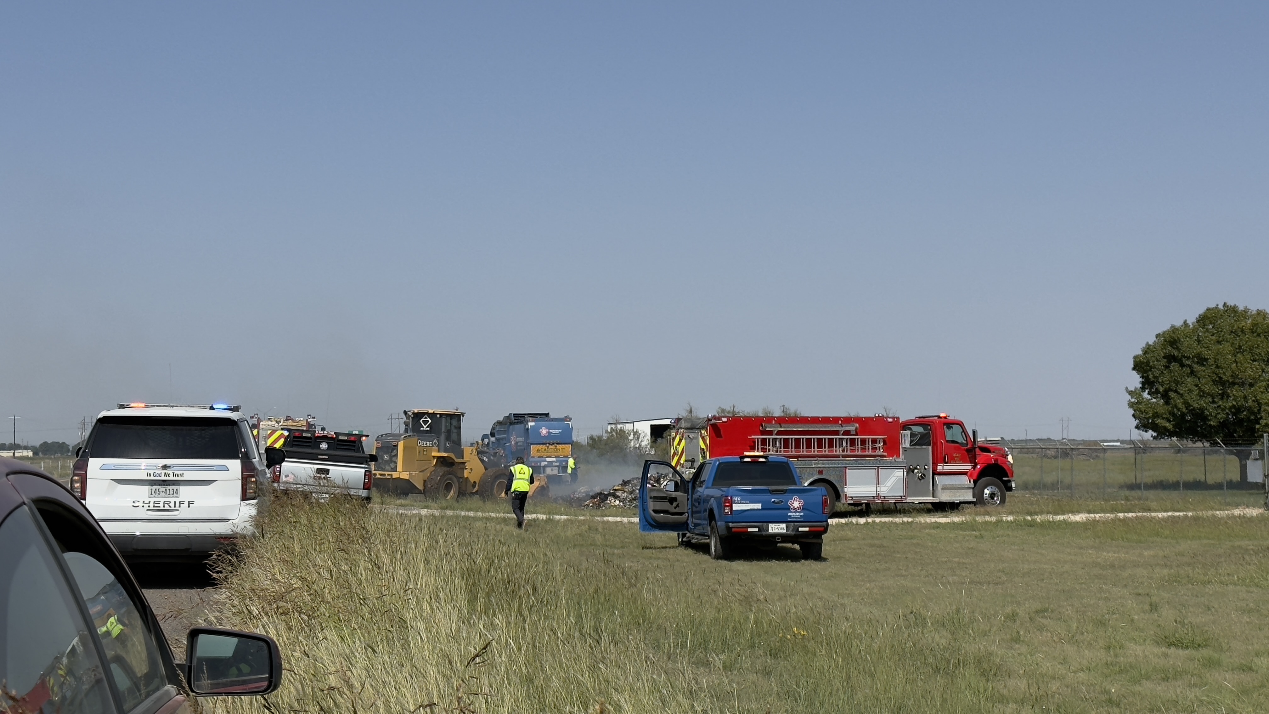 SAN ANGELO, TX – A Republic Services garbage truck caught fire along Loop 306 this afternoon, prompting an emergency response to extinguish the blaze.