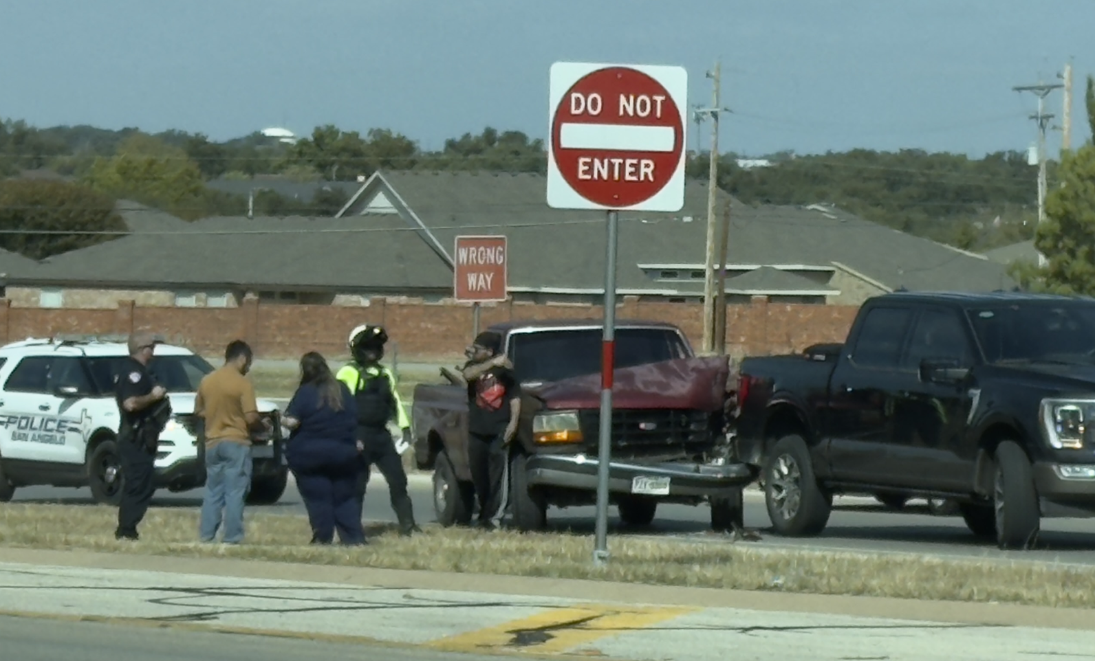 Around 12:15 p.m., the San Angelo Police Department issued a Nixle for Loop 306 on the Knickerbocker Road exit for a major crash. On scene, reporters observed a crash between two pickup trucks. An older model maroon pickup had significant front-end damage. The black truck involved had potential rear end damage.