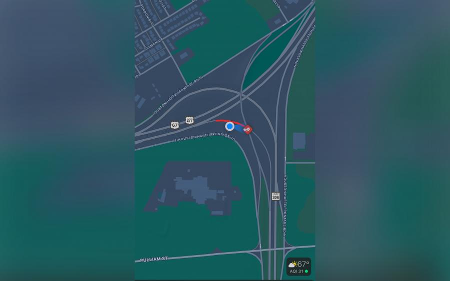 SAN ANGELO, TX – One person was hospitalized after a rollover crash Wednesday afternoon on the East Houston Harte Frontage Road near the Pulliam Street exit.