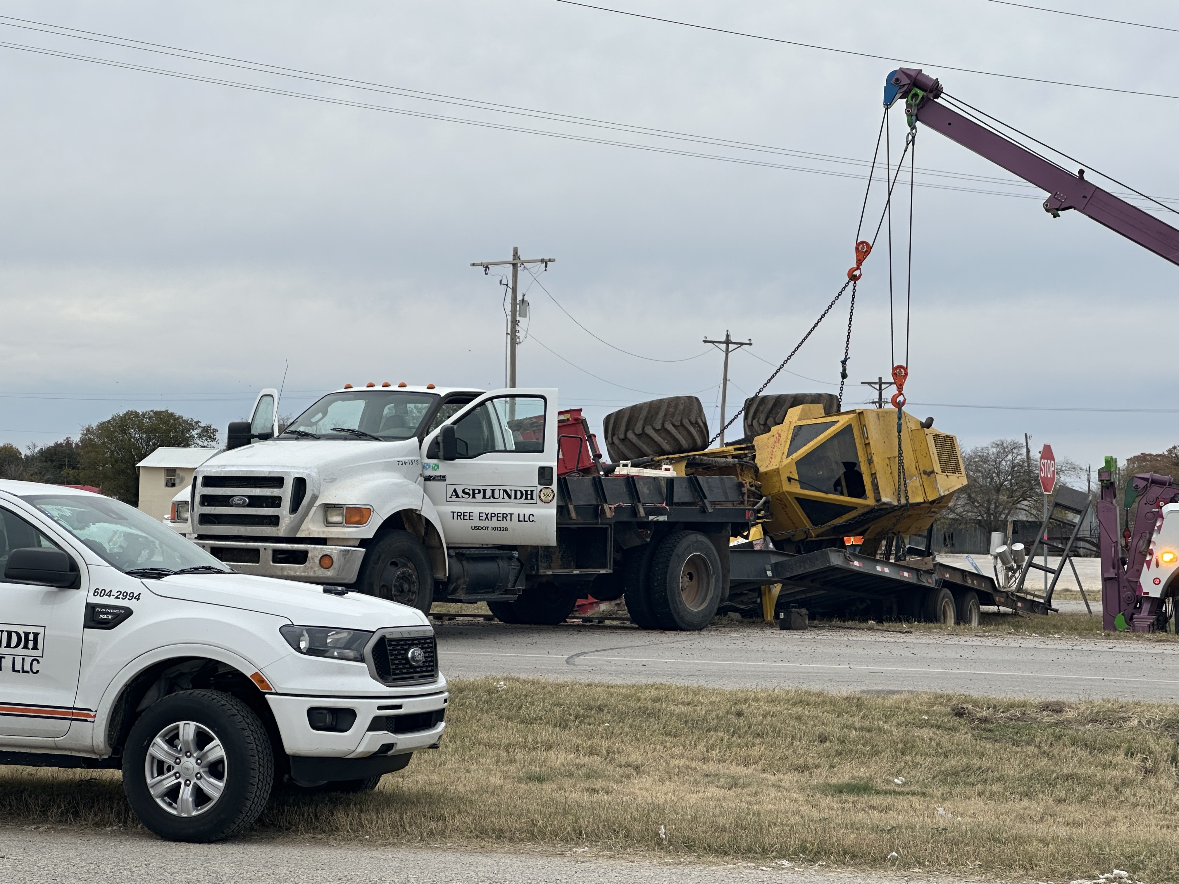 This happened after a semi-truck reportedly pulled out in front of the truck carrying the equipment, forcing the driver to swerve into a ditch to avoid a collision.