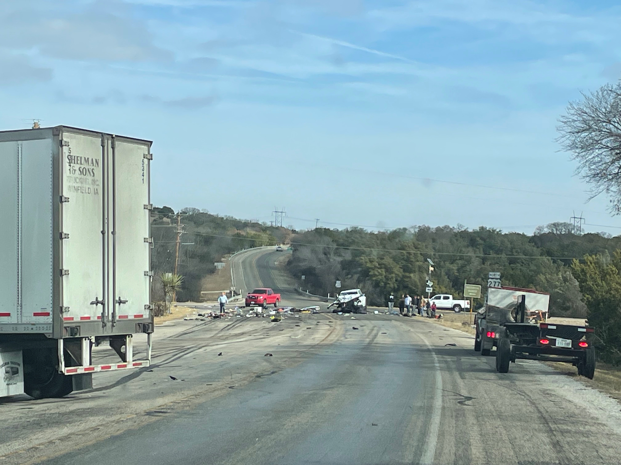 According to witnesses at the scene, the crash may have involved a fatality as traffic on this narrow stretch of US 277 was blocked as first responders and the Texas DPS investigated.