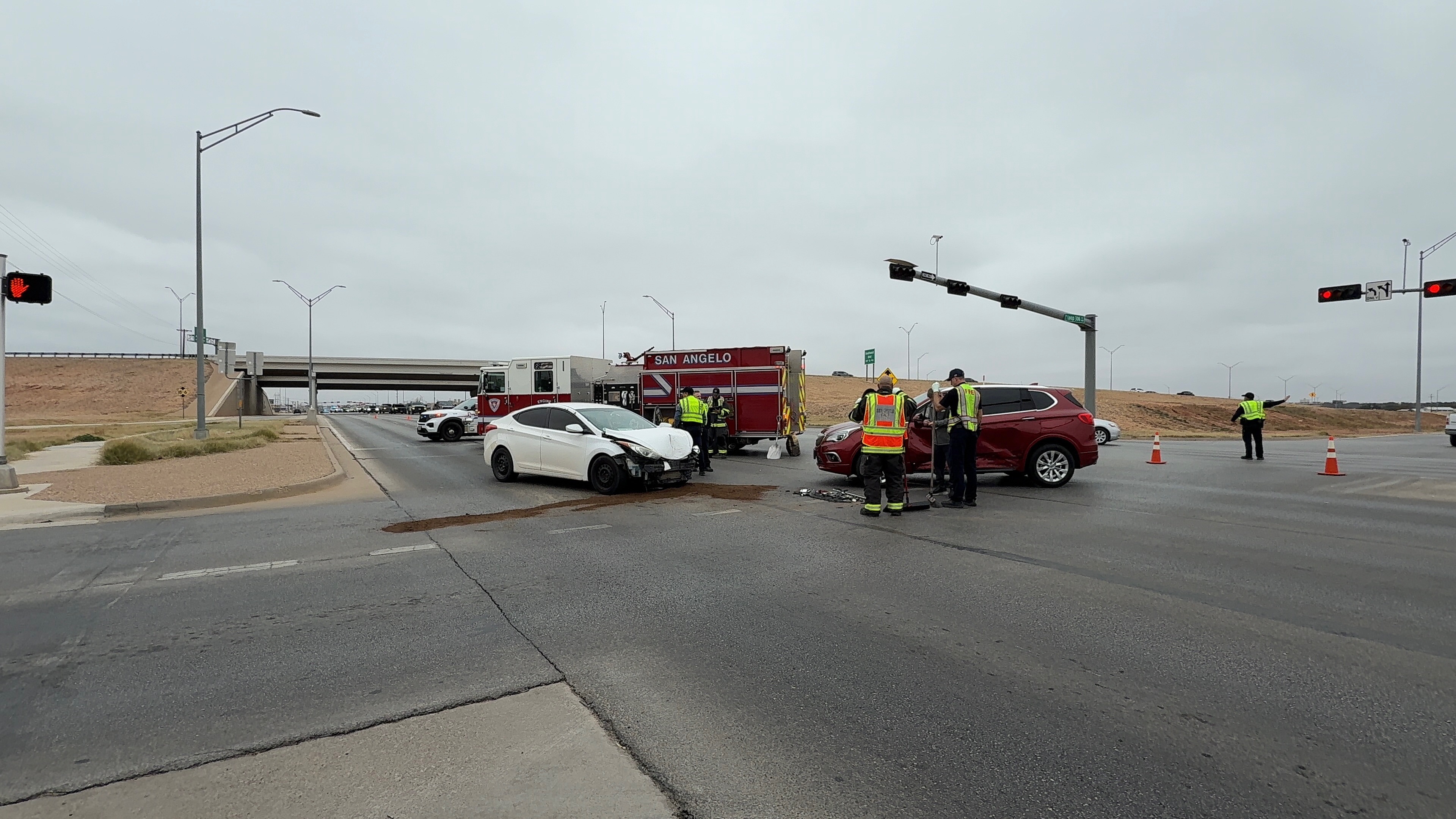 According to San Angelo Police, a three-vehicle crash at the intersection of West Houston Harte and Sherwood Way occurred around 1:15 p.m. A red Buick Enclave and a red Ford Taurus were both in the right and left lane. One was turning left onto Sherwood Way, and the other was going straight.