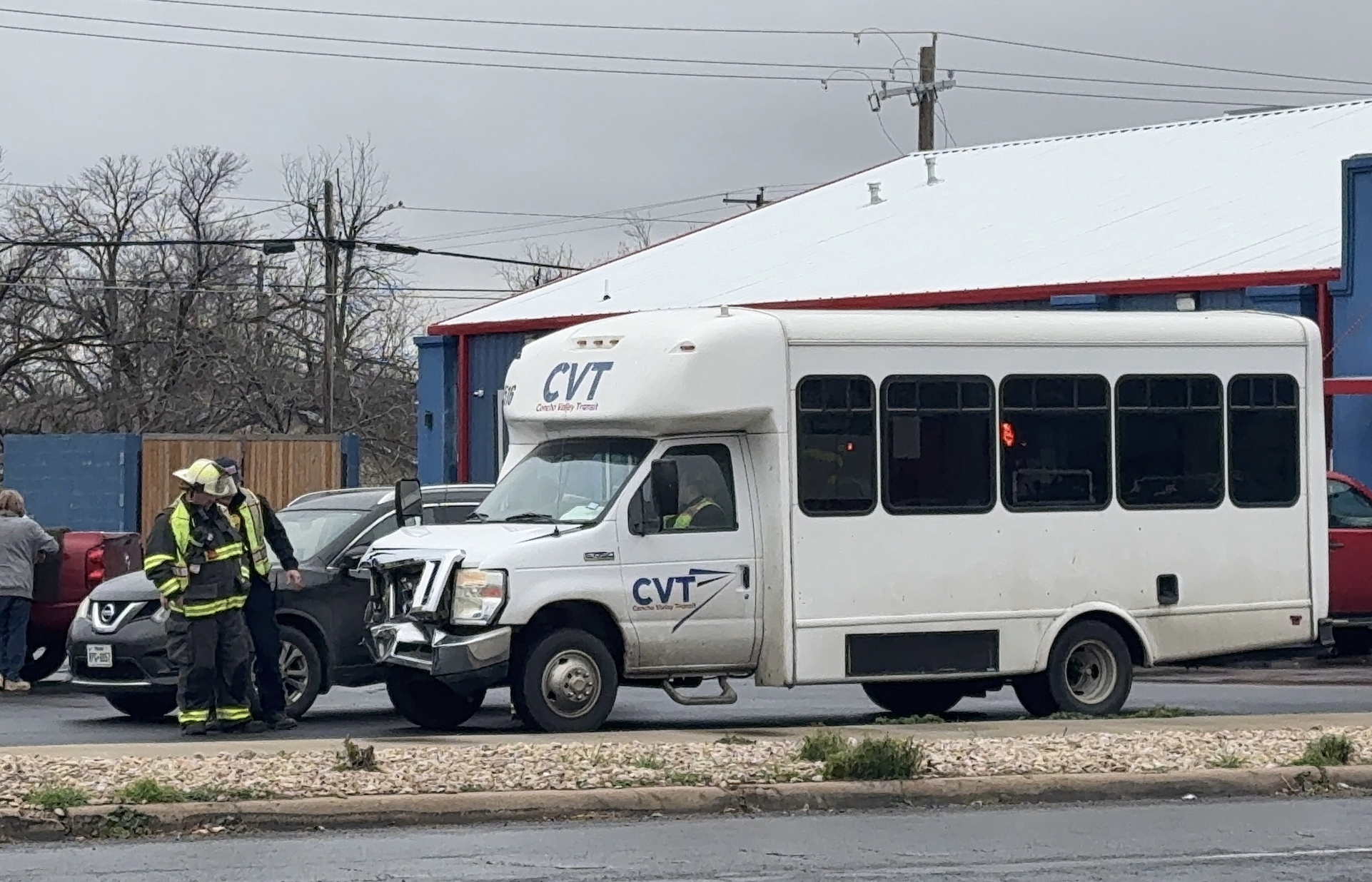 According to scanner reports, around 3:05 p.m., a Concho Valley Transit Bus was involved in a major crash at 19th Street and Armstrong Street. Reporters on scene observed a city bus with front right passenger side damage at the scene parked in the Wash Dry laundromat parking lot and a red Ford pickup in the Stripes parking lot.