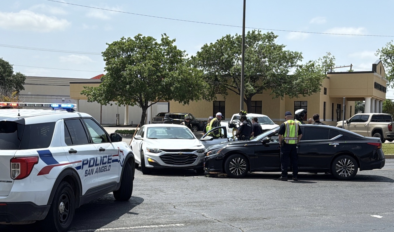 According to a San Angelo Police Department traffic officer at the scene, the crash occurred when a black Nissan and a white Chevy Malibu collided as both vehicles were exiting private properties across from each other. One was attempting a left turn while the other was turning right, resulting in a collision in the middle of the roadway.
