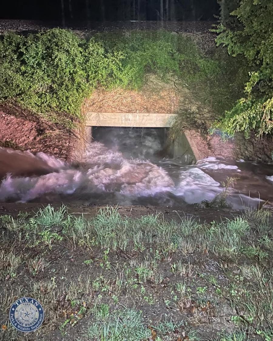 According to Texas Game Wardens, a man and a woman were inside a car when fast-moving floodwaters forced it through a square culvert beneath railroad tracks. The vehicle was completely submerged during the incident.