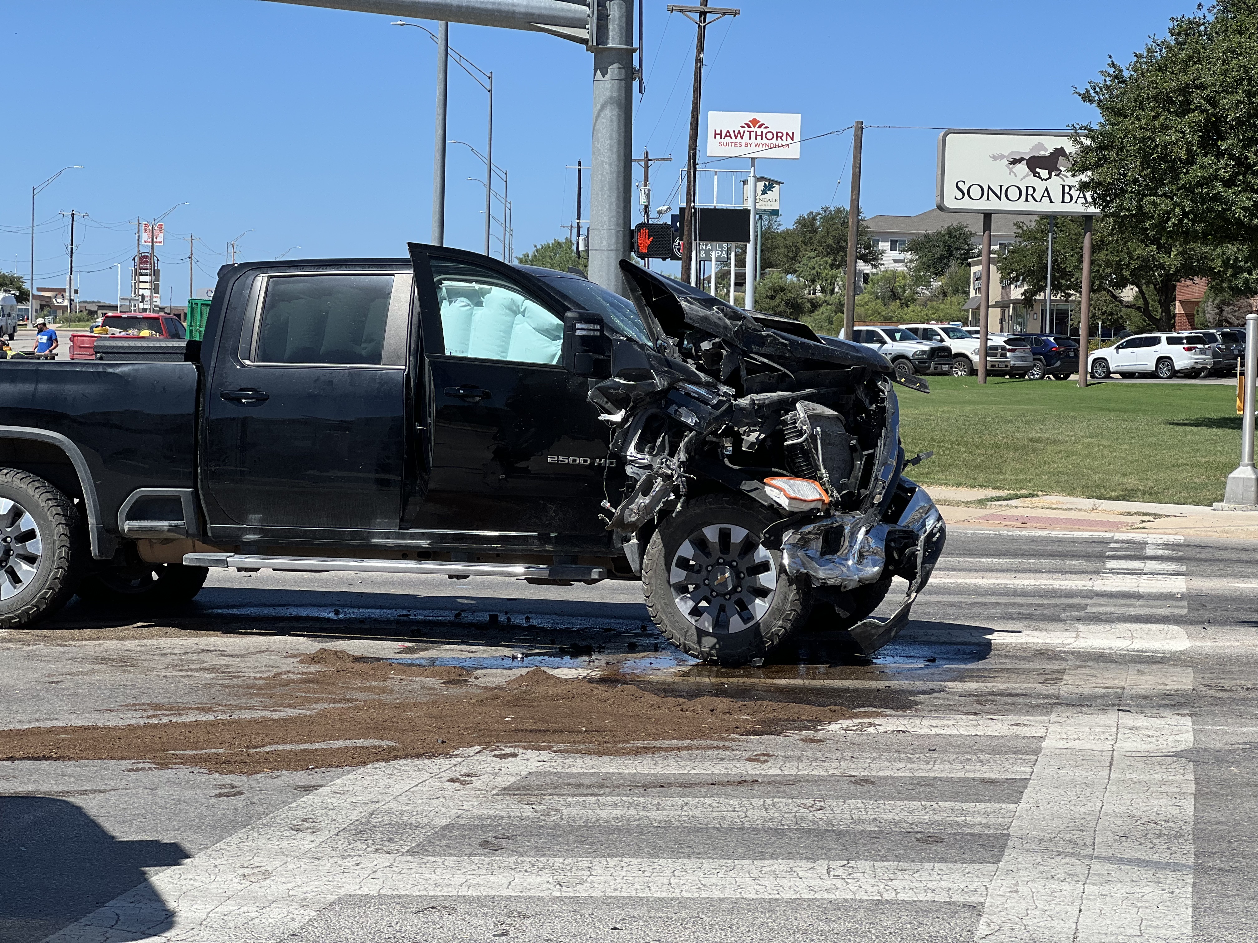 It happened around 11:30 a.m. An officer with the SAPD traffic unit said a white Ford pickup was heading east on Sherwood Way and attempted to turn left onto FM 2288. A black Chevrolet pickup, which was traveling westbound on Sherwood Way with a trailer, struck the Ford as it turned.