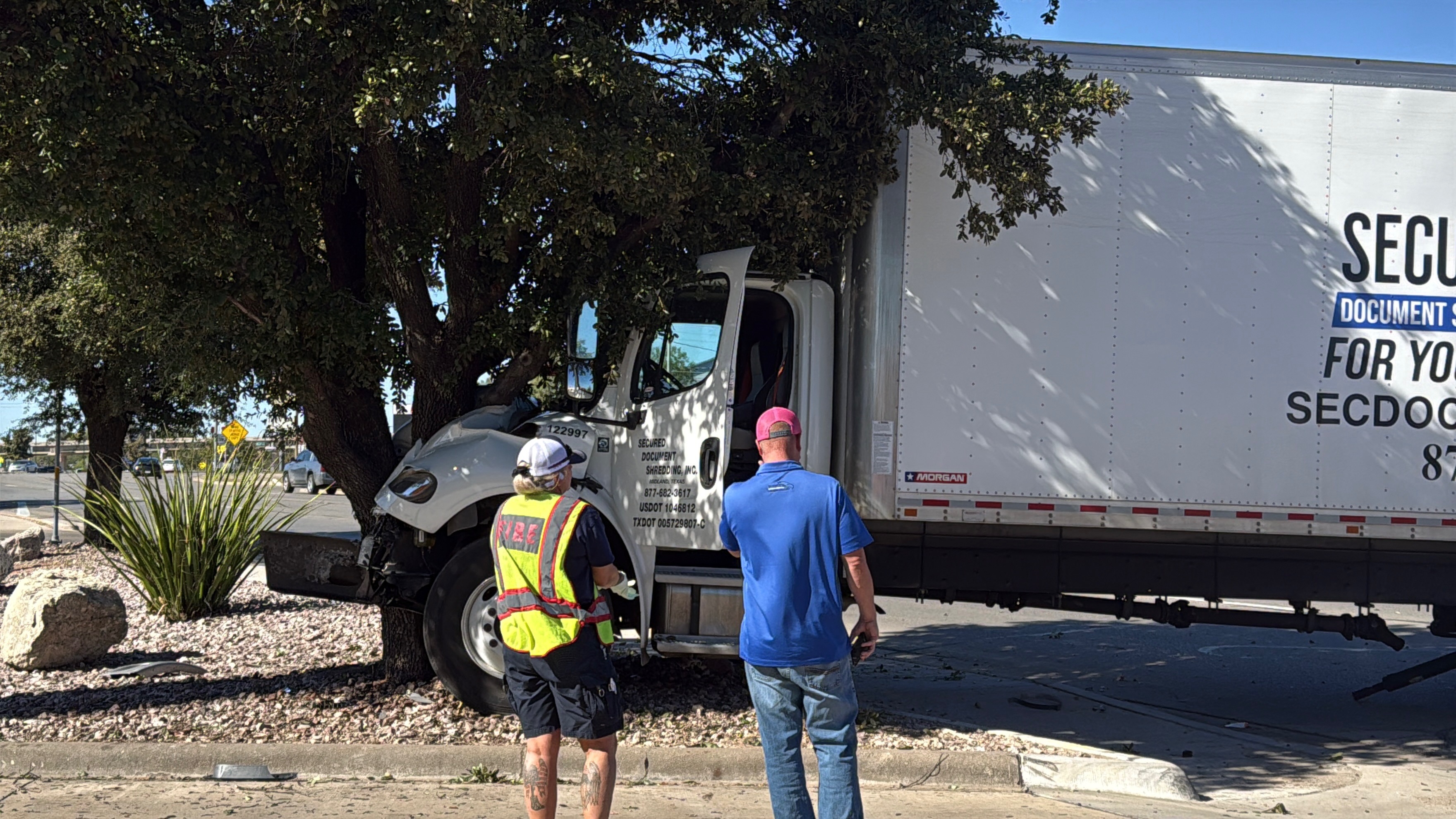 SAN ANGELO, TX — A crash Monday on North Koenigheim Street sent a truck careening into a tree.