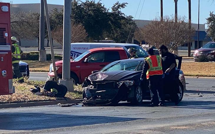 SAN ANGELO, TX — Two passenger cars collided at the intersection of FM 2105 and Grape Creek Road at around 2 p.m. Saturday. One of the vehicles also hit a guide wire of an electrical tower.