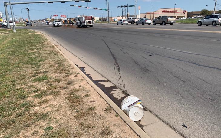 Bucket of Motor Oil Spills Causing Cars to Slide on Roadway