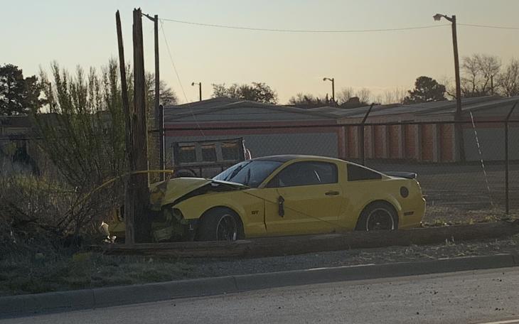 Mustang Snaps Telephone Pole in Half on North Bryant