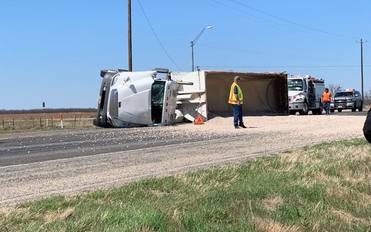 WATCH: Rock Hauling Truck Crashes on US 277 at FM 2105 Spilling Load on Roadway