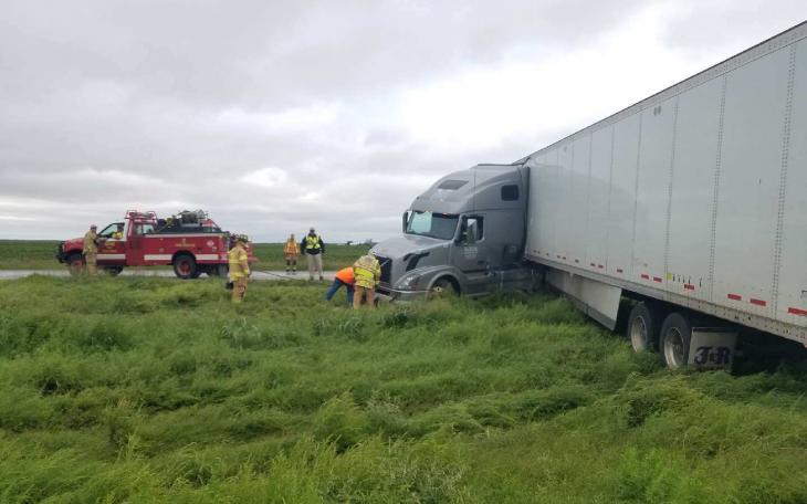 Slick Roads Cause 2 Tractor-trailers to Jackknife on US 87