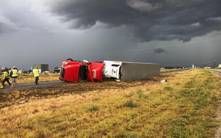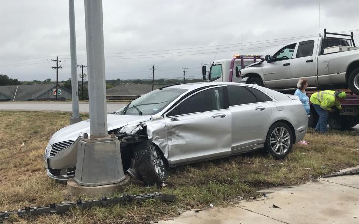 Dodge Ram Towing Travel Trailer and Car Crash Blocking Knickerbocker at Loop 306