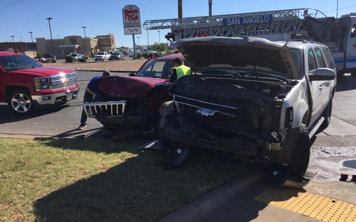 Caddy T-Bones a Nissan Before Plowing Through Yard