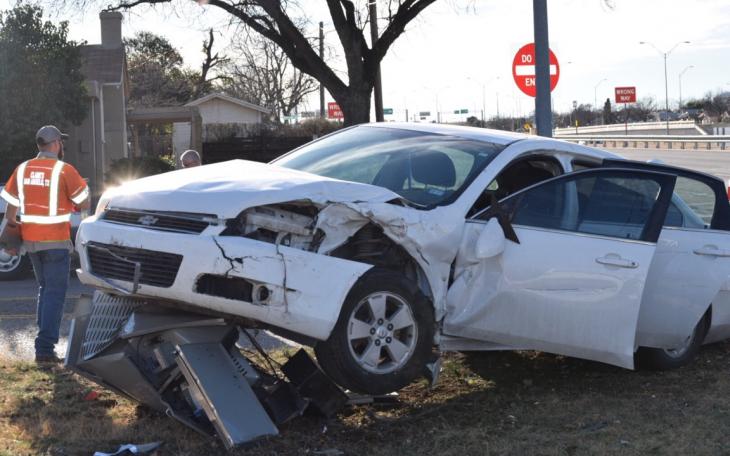 Driver with Invalid License Runs Red Light, Shoves Impala on Suddenlink Box