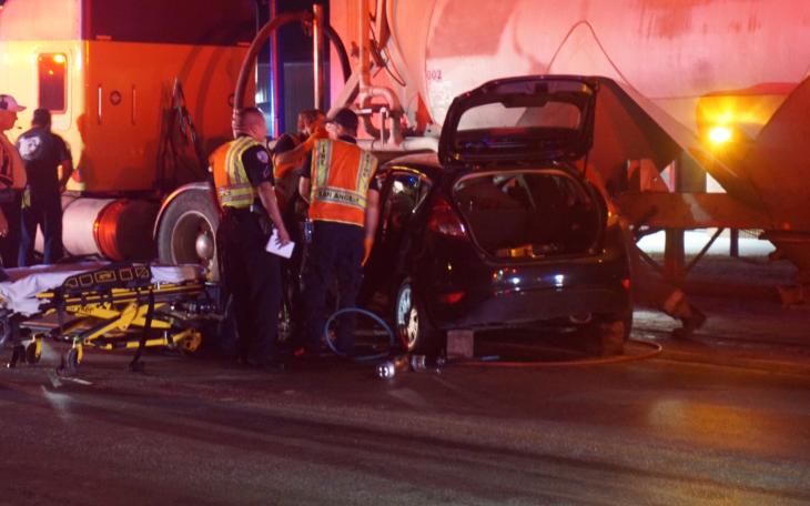 Woman Trapped After Ford Fiesta Tangles with Sand Truck