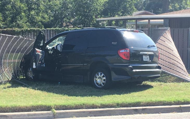 Minivan Rams Through Fence After Colliding with Cadillac