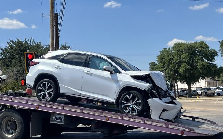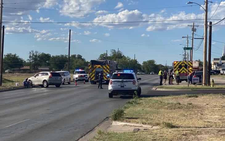 SAN ANGELO, TX — Two Chryslers collided on Knickerbocker Rd. at University at 12:15 p.m. Thursday afternoon. The damage appeared moderate. One block southwest on Knickerbocker are the chicken restaurants, Cane's and Chick Fil A, hence this part of town is often referred to as "The Chicken District." Taco Bell and Rosa's on opposite corners also sell a high value of chicken.