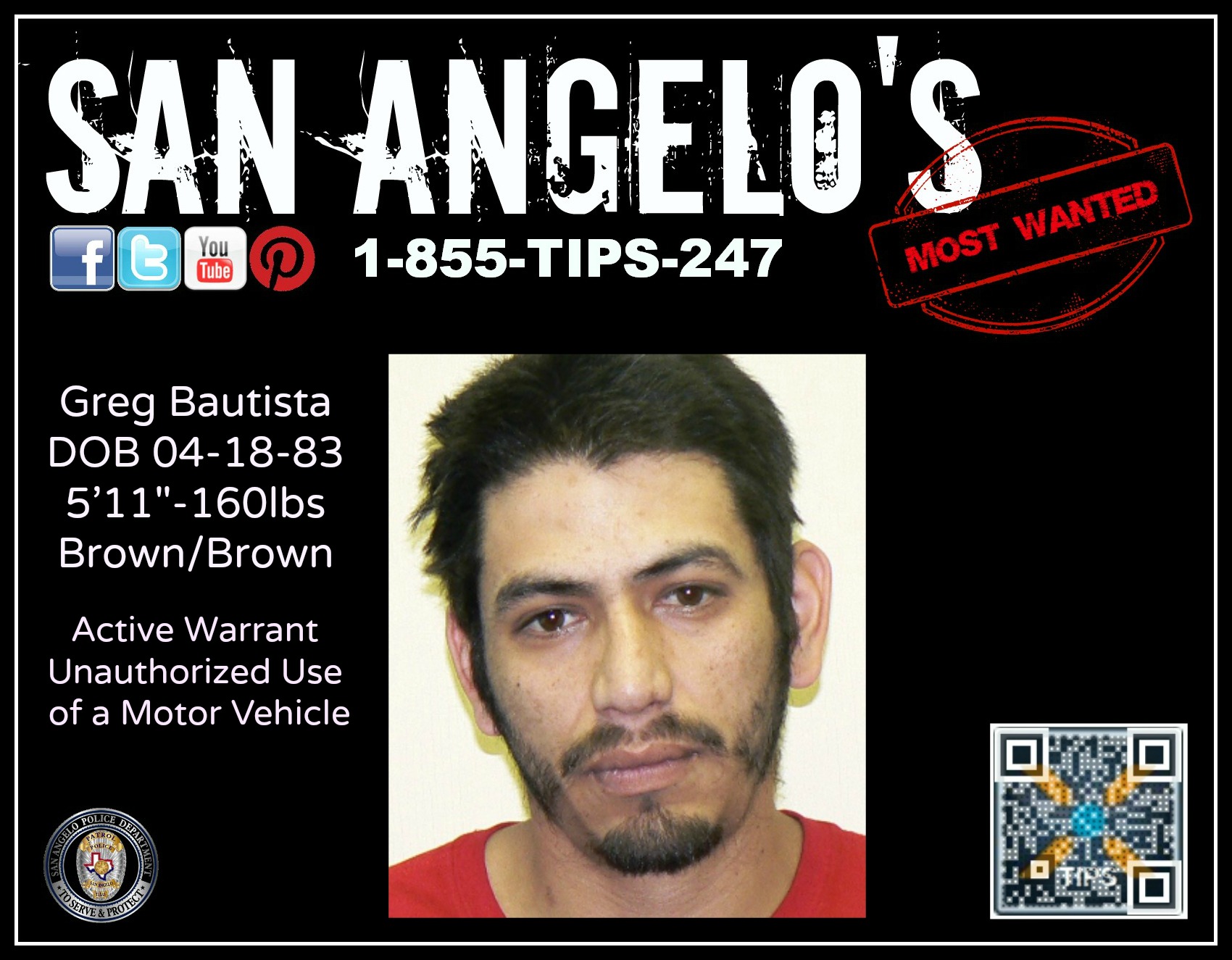 The SAPD needs the public's help locating Greg Bautista, and encourages tipsters to call in anonymously at 1-855-TIPS-247.