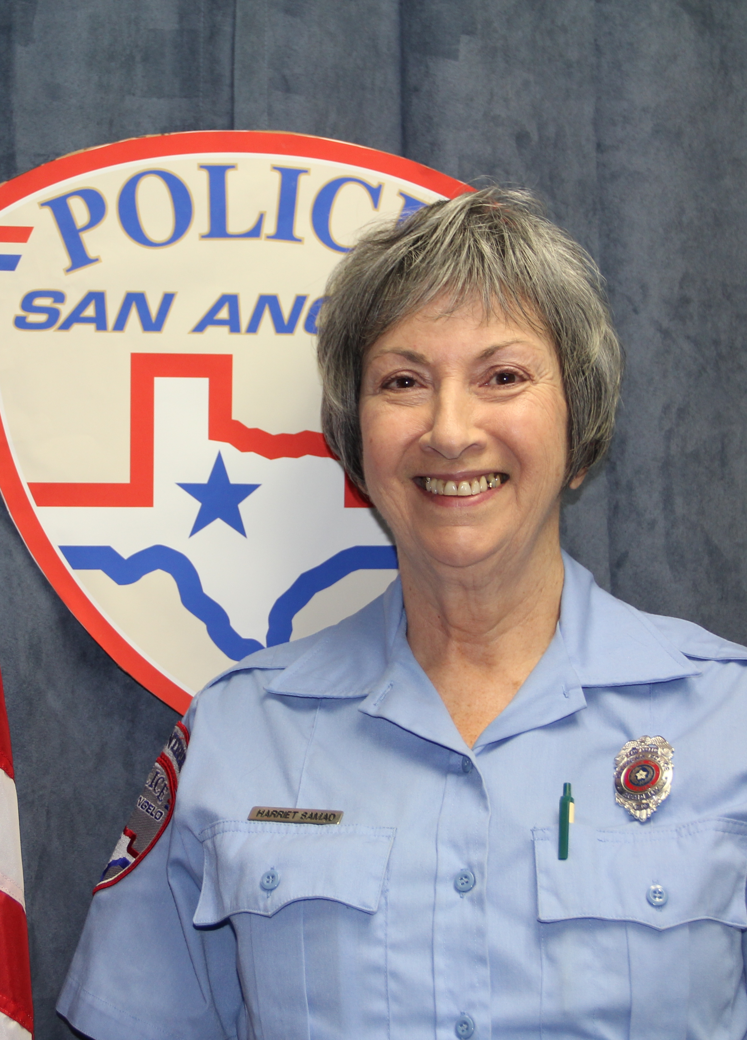 Harriet Samad started as an SAPD volunteer 10 years ago this month, in November 2003. She describes the officers and administration as an extension of family, and says she feels incredibly welcome and comfortable in her position.